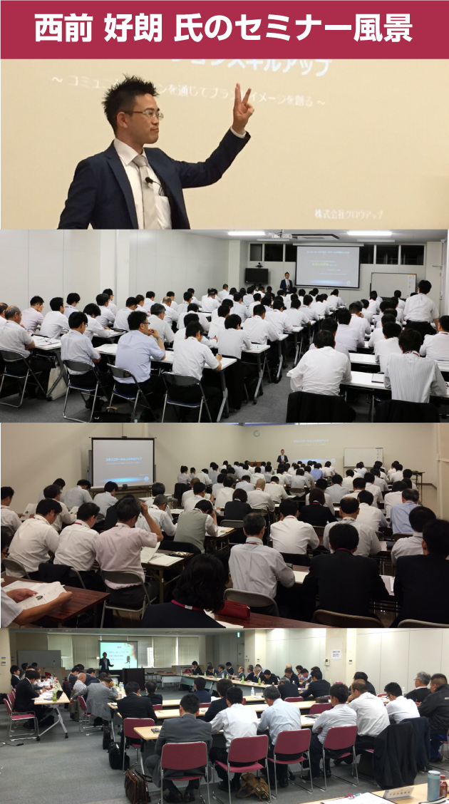 現在は、NLPコーチとして年間28回のセミナー講師を務め、受講者の「人間関係の悩み」「自己評価の悩み」などの解決に関わっています。最終的には、本人が悩みの原因を見つけ、解決に向けて行動するのですが、そこまで導くのがNLPコーチの仕事です。つまり西前氏は、説得力のある話をして、人を行動させる専門家なのです。